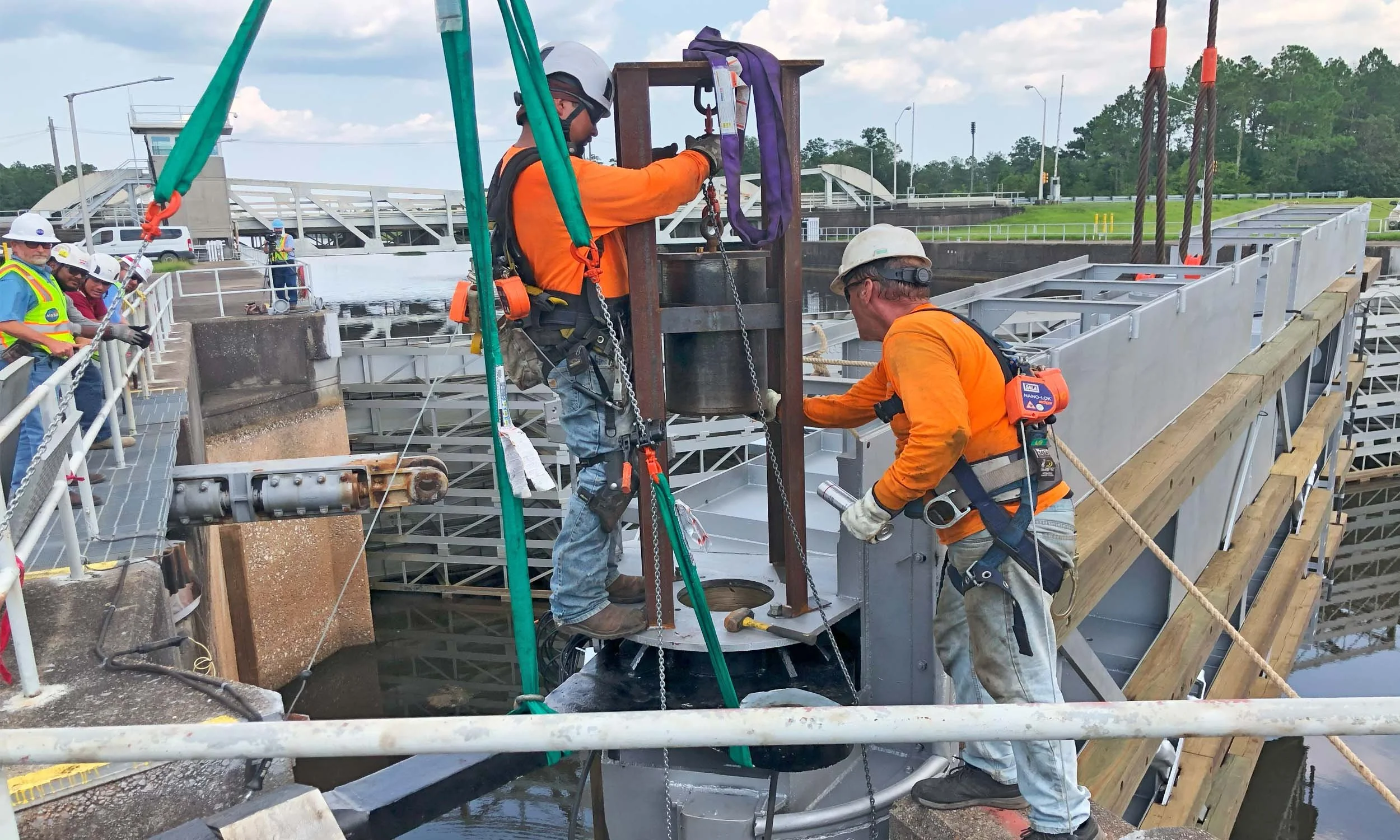 NASA awarded Massman Construction Co. the contract to rehabilitate the lock miter gates at Stennis Space Center. To facilitate the rehab project, SSC closed the lock to navigation beginning in November 2022. Reopening the lock on schedule was critical for NASA to meet its schedule for testing rocket engines for its Artemis II mission.